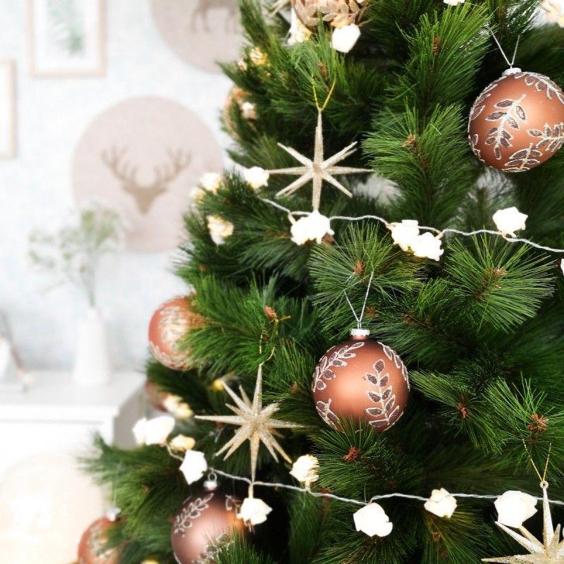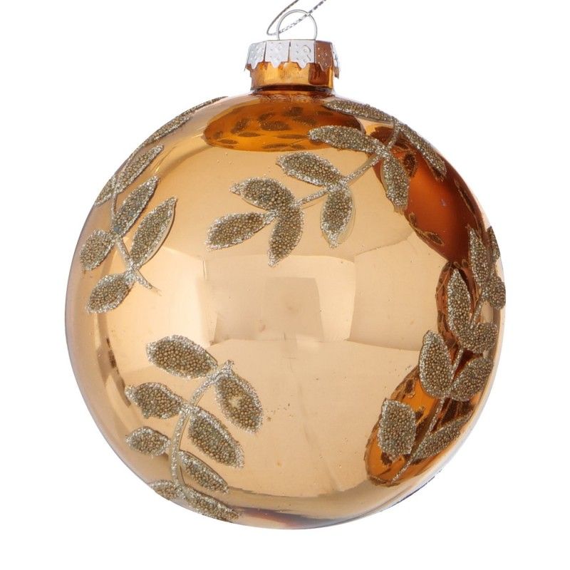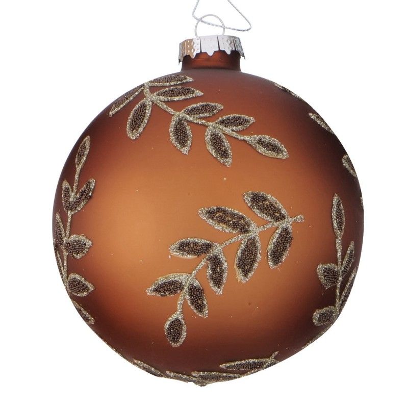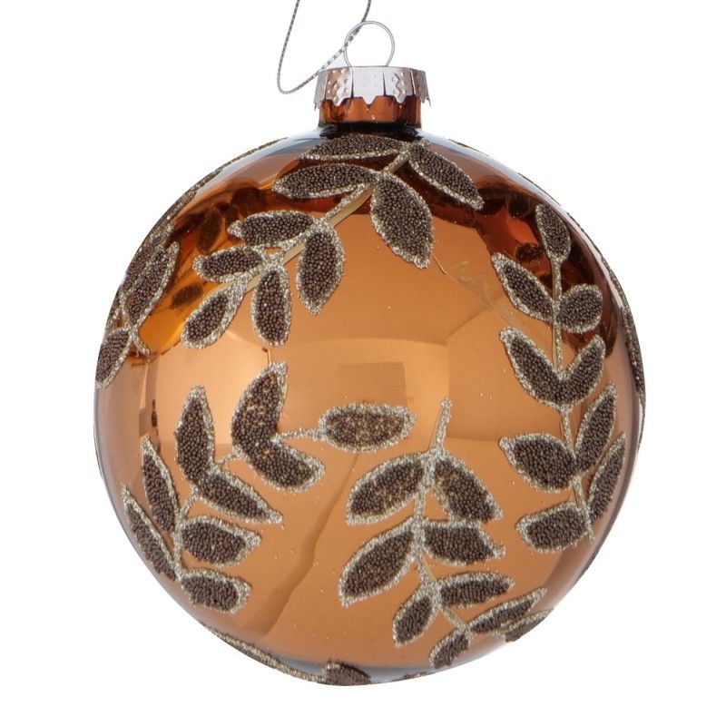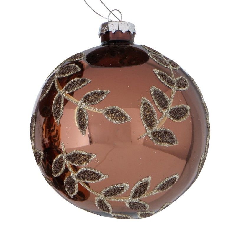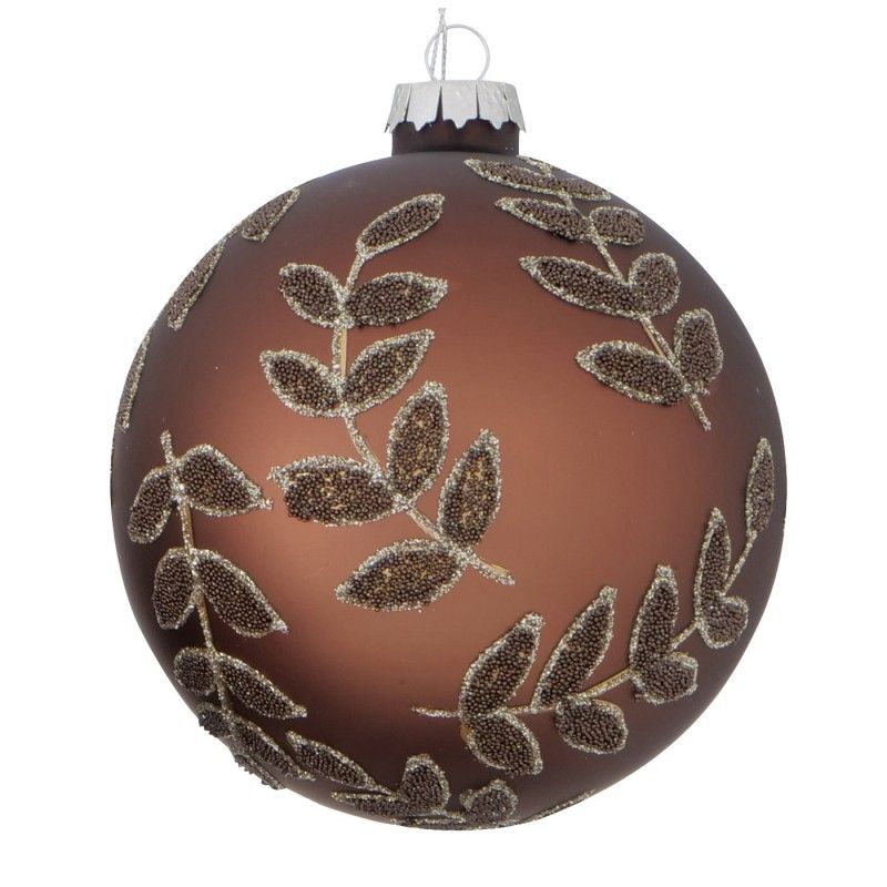 Adorno de Navidad en forma de bola fabricada en vidrio de 10cm de diámetro en tonos marrones. Elige entre 6 modelos o combínalas para tener un árbol lleno de mágia que te haga volver a revivir ese espíritu navideño.